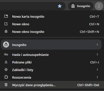 - wejść do przeglądarki w trybie incognito (lub po wyczyszczeniu danych przeglądania)